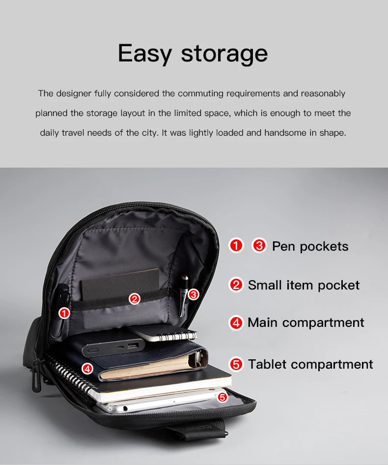 Built for practicality and weather resistance, this sleek bag embraces the unpredictable nature of travel. Its waterproof exterior repels rain, spills, and moisture, ensuring your gear stays protected and dry. Plus, the premium materials guarantee durability, so you can enjoy this reliable companion for years to come. The minimalist urban style pairs perfectly with any outfit, making it ideal for workdays, casual outings, or impulsive city walks.